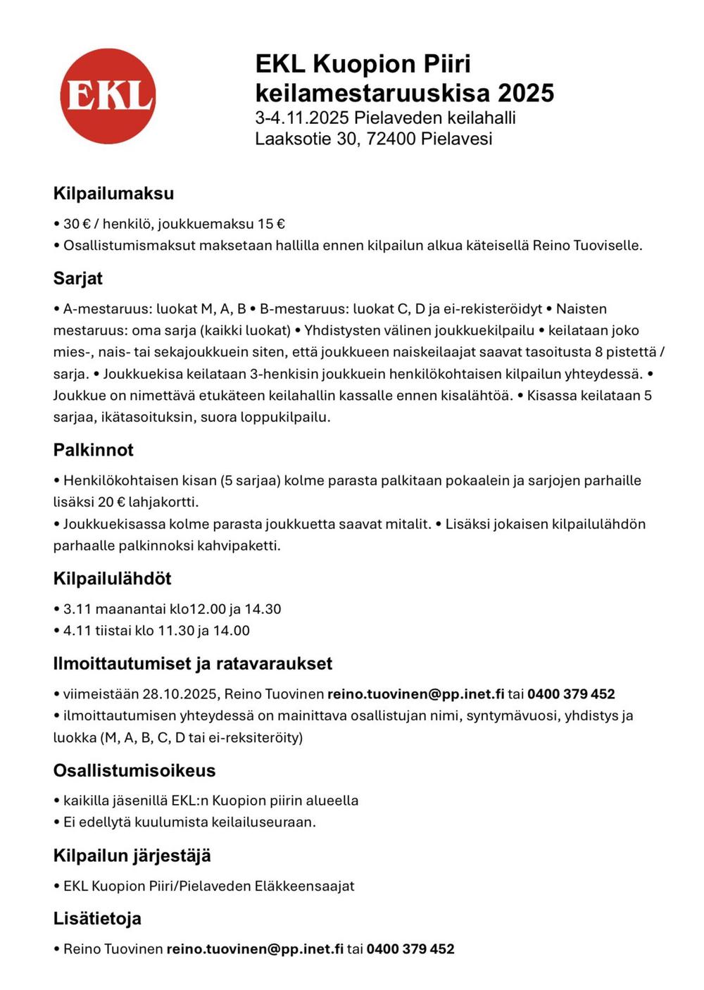 Yhdistyksen jäsenenä voit osallistua monipuoliseen yhdistystoimintaan sekä harrastuksiin. EKL:n jäsenlehti sisältyy jäsenmaksuun.
