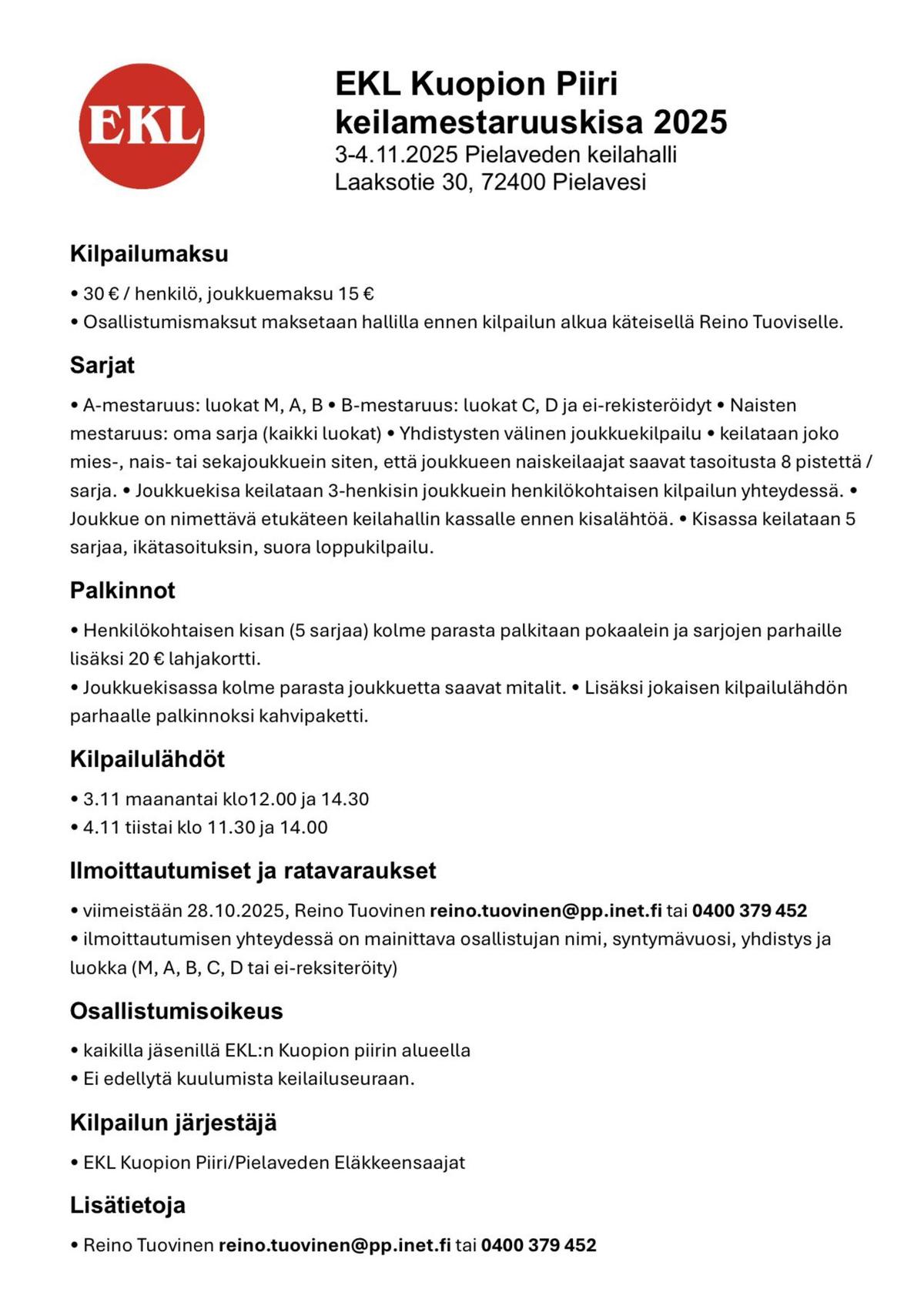 Syyskokous 13.11. klo 10 Ikälässä.